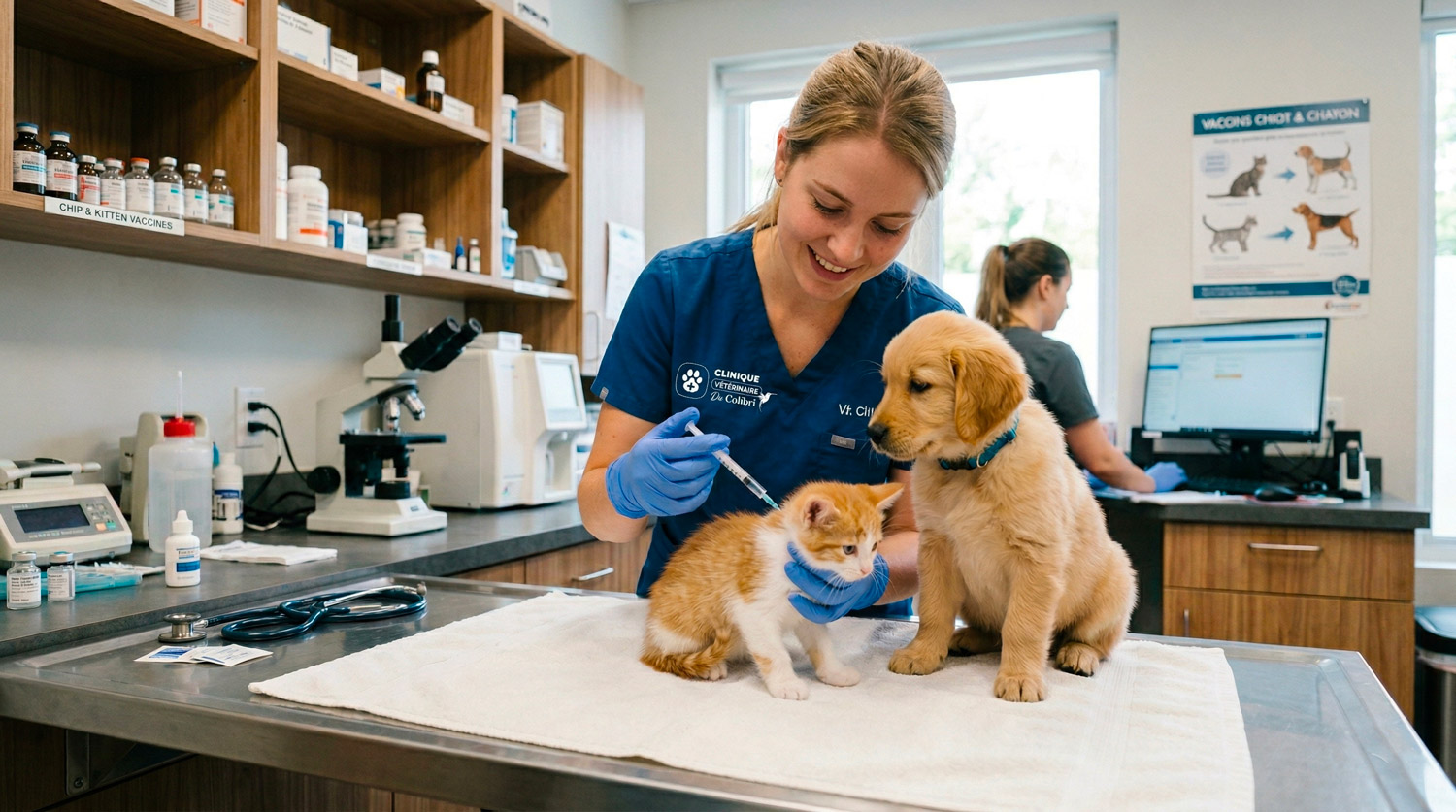 La primovaccination du chiot débute généralement entre 6 et 8 semaines. Voici les étapes clés que nous suivons à la clinique :